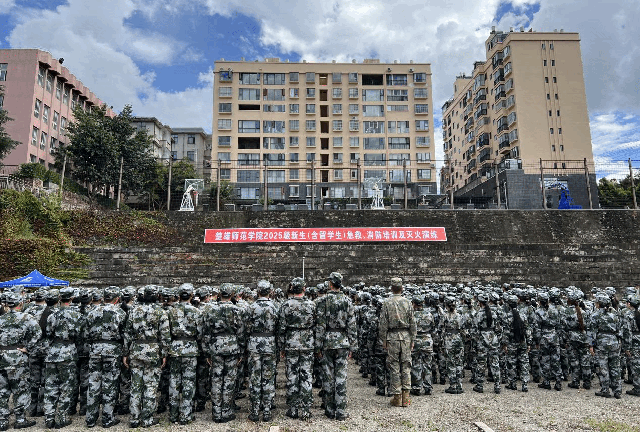 为深入贯彻落实校园安全工作要求,切实提升2025级新生的消防安全意识和应急自救能力,2025年10月14日至15日,楚雄师范学院在学生处、保卫处的联合组织下,在雁塔校区6、7幢公寓后停车场,成功为2025级全体新生(含专升本、留学生新生)举办了一场内容丰富、注重实效的消防知识培训与器材实操演练。