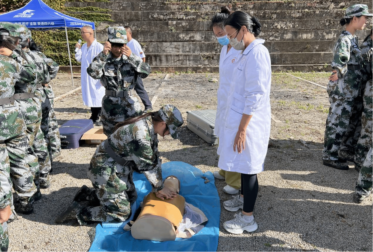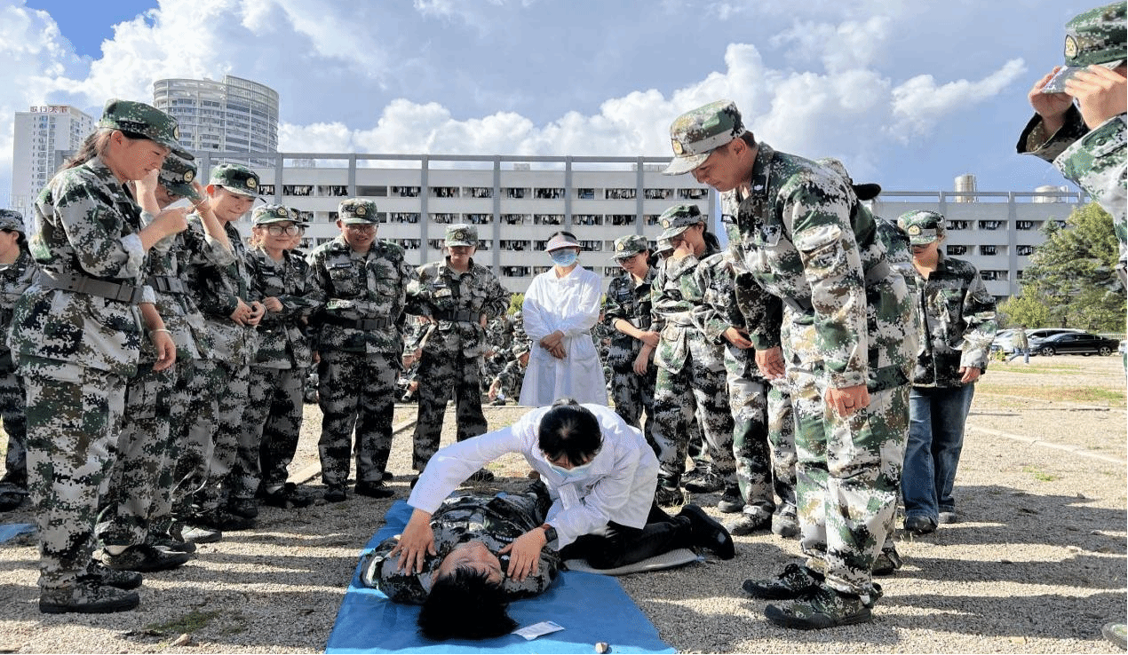 结合消防演练学校还特邀楚雄市妇幼保健院计划生育服务中心的医护人员,为同学们带来了急救知识普及教育,现场讲解并演示了心肺复苏术与AED(自动体外除颤器)的使用方法,并邀请学生进行模拟操作,进一步丰富了安全教育的内涵,全面增强了新生的综合安全素养。