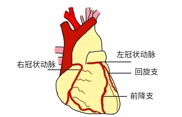 急性心肌梗死是冠心病的一种类型,也是危害最大的一种。主要机制是给心肌供血的冠状动脉血供突然急剧减少或中断,使相应的心肌严重持久的缺血而引起的心肌坏死。心脏的供血通道一共由三支动脉血管组成,分别为左冠状动脉的前降支、回旋支以及右冠状动脉。