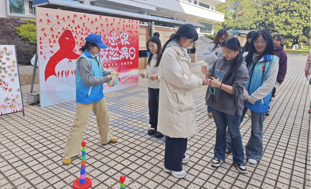 2025年12月1日是第38个“世界艾滋病日”,为切实提升高校学生的防艾知识水平与自我保护意识,打破对艾滋病感染者的歧视与偏见,12月3日,我校学工部举办了本次“防艾游园活动”,我校卫生所和楚雄州疾病预防控制中心工作人员参加了此次防艾宣传教育活动。